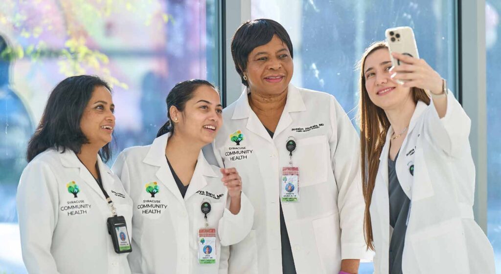 2025 has proven to be a milestone year for Syracuse Community Health – it was the inaugural year for its new Family Medicine Residency Program, which offers a unique approach to family medicine training rooted in out-patient settings, community based care, and serving the needs of the most vulnerable patient populations. At the center of the program are the four residents leading the way in SCH’s new endeavor, which is led by Program Director Cristian Andrade, MD. Having already completed four years of undergraduate college and four years of medical school, these residents are training to become family medicine physicians who will offer comprehensive, continuous healthcare for people of all ages—infants, children, adults, and the elderly.