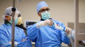 The transcatheter heart valve procedures Dr. Kalra has expertise in, including transcatheter aortic valve replacement, or TAVR, are important, less invasive alternatives for patients who aren’t candidates for open-heart surgery. Dr. Kalra explained that these procedures involve replacing or repairing heart valves using a combination of wires and catheters, with valves crimped onto a balloon that can pass all the way up to the heart through vessels in the patient’s leg– a small incision compared with open heart surgery, which requires cracking through the breastbone to access the heart. Unlike open-heart surgery, which often requires a multi-day hospital stay, transcatheter heart valve procedures allow patients to return home the next day; in some instances, even the same